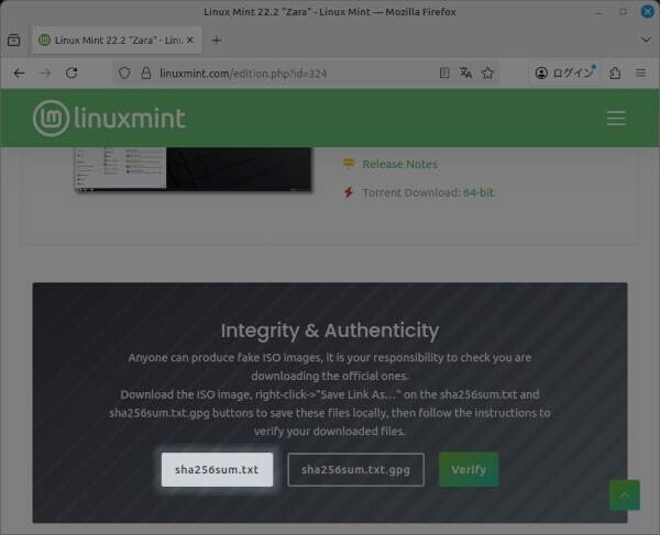 まずは、改ざん防止の例から見てみましょう。 ここではLinux MintのISOイメージファイルが改ざんされていないことを確認する手順を紹介します。