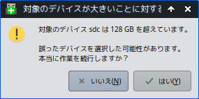 上図のように "USBデバイスのターゲットを選択" に新たに増えたデバイスを選択します(上図の例では sdc が増えている)。