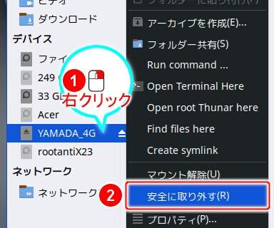 USBフラッシュメモリの利用手順も Caja と同じような感覚で操作することができます。